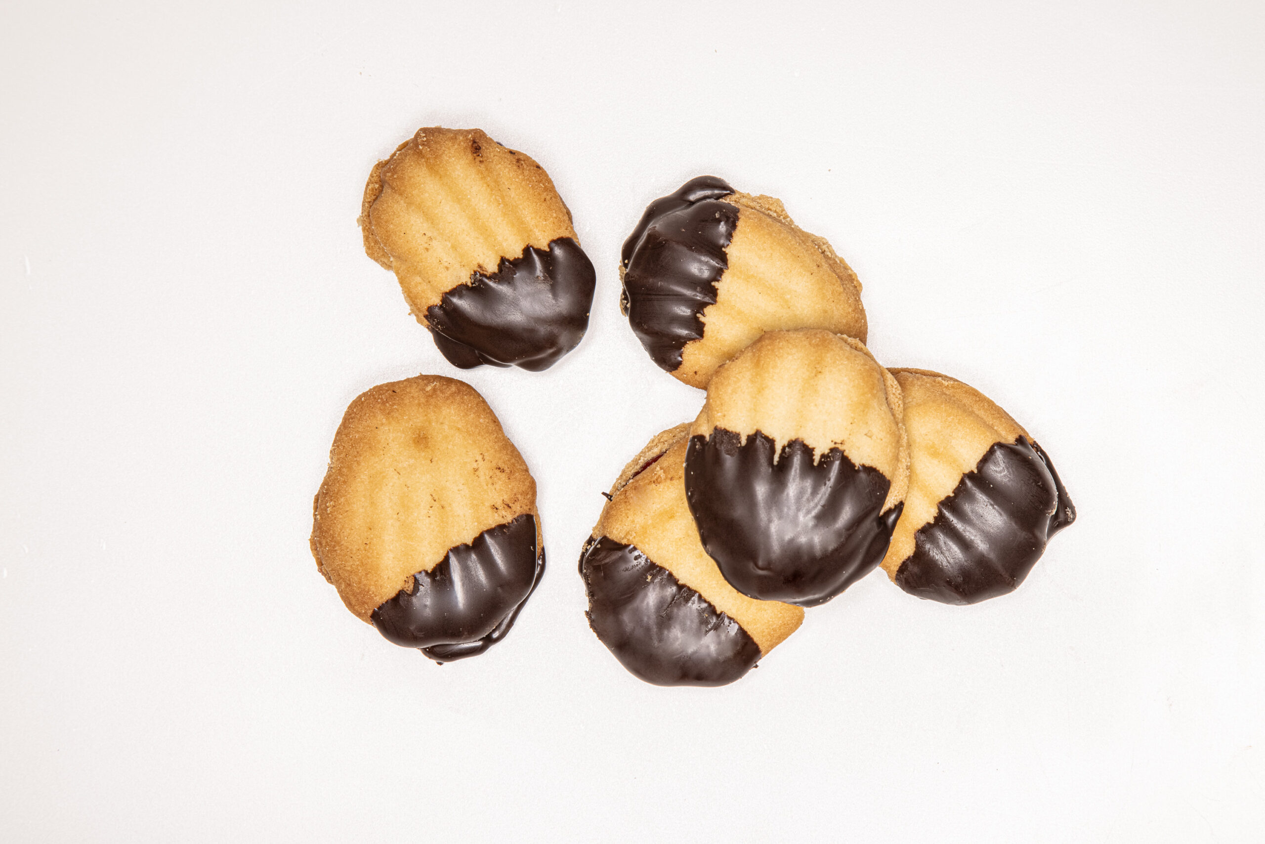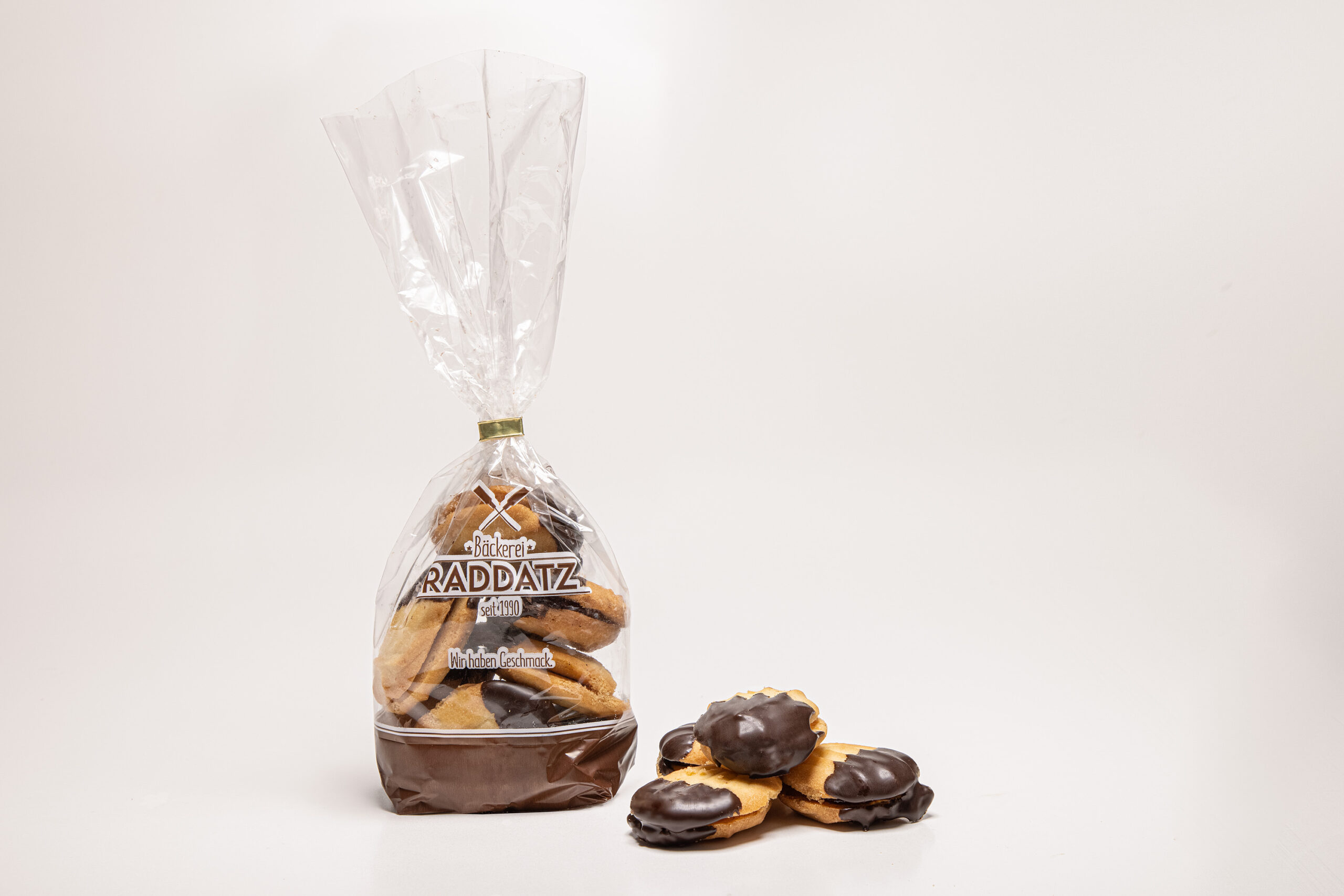 Beschreibung: Ein wunderbar mürbes, sandiges Butter-Spritzgebäck, welches mit Himbeer-Johannisbeer-Konfitüre gefüllt und mit Zartbitterkuvertüre überzogen wird. Einfach unwiderstehlich lecker!