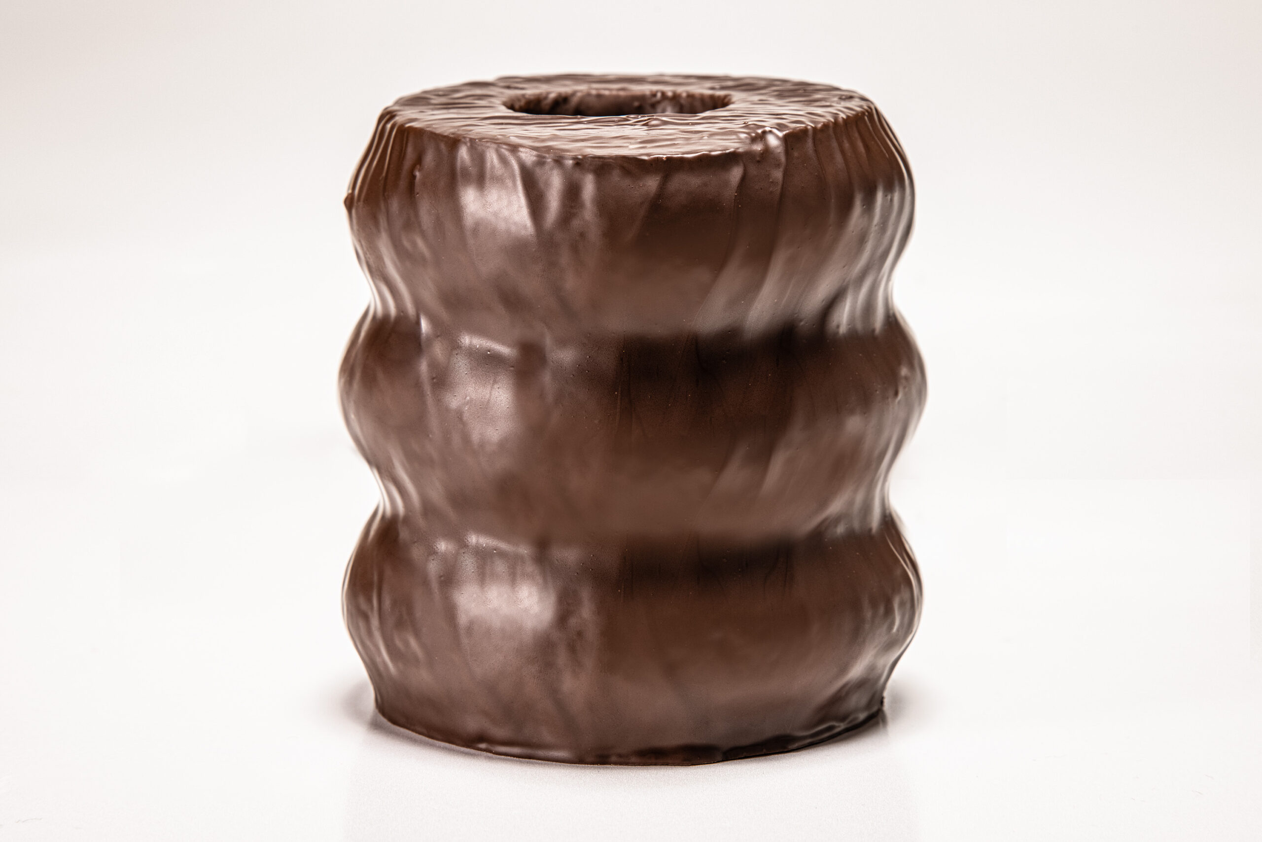 Ein Baumkuchen (3 Ringe), überzogen mit Zartbitter-Kuvertüre